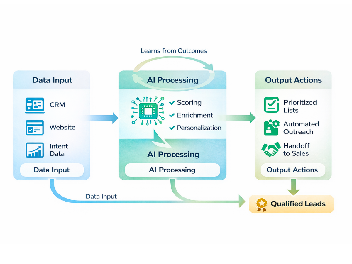 AI enriches contact data, scores leads, and prioritizes outreach. This isn’t just about appending email addresses – it’s about synthesizing signals from multiple sources to predict which leads are most likely to convert. AI-driven lead scoring has increased the accuracy of lead qualification by 40% (Reach Marketing, 2025). That means your sales team spends time on the right conversations, not chasing dead ends.