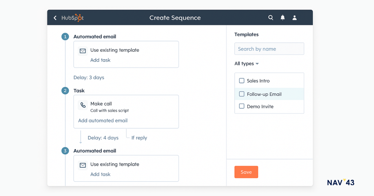 Email alone won’t cut it anymore. Top-performing sequences blend automated emails with strategic human touches across multiple channels. HubSpot makes this orchestration simple through task automation. As a workflow tool, HubSpot automates repetitive marketing and sales tasks, allowing teams to focus on high-value activities.