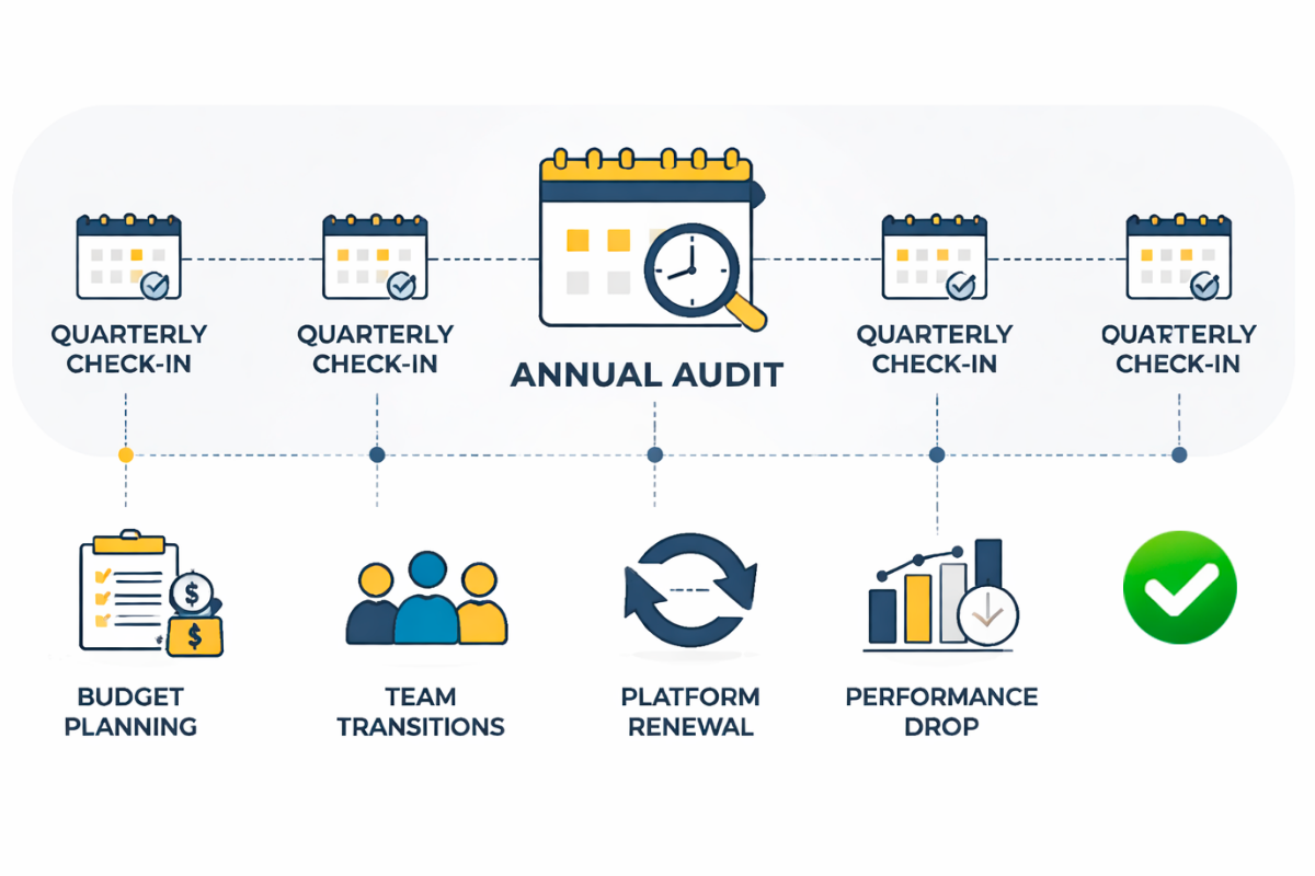 Annual audits are table stakes. But triggered audits catch problems before they compound into budget sinkholes or missed pipeline opportunities.